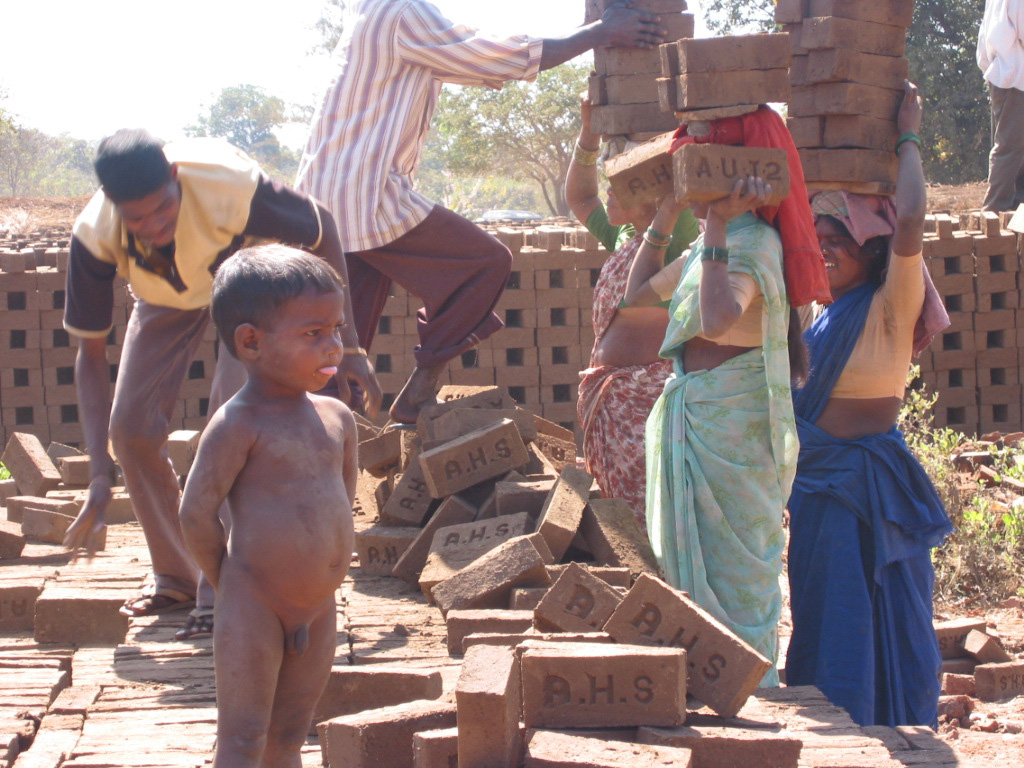 Katkari men, women, and children migrate to work sites, often for 6 months each year from November to April, leaving their hamlets virtually abandoned. Bonded labor is prevalent and living conditions are dismal.